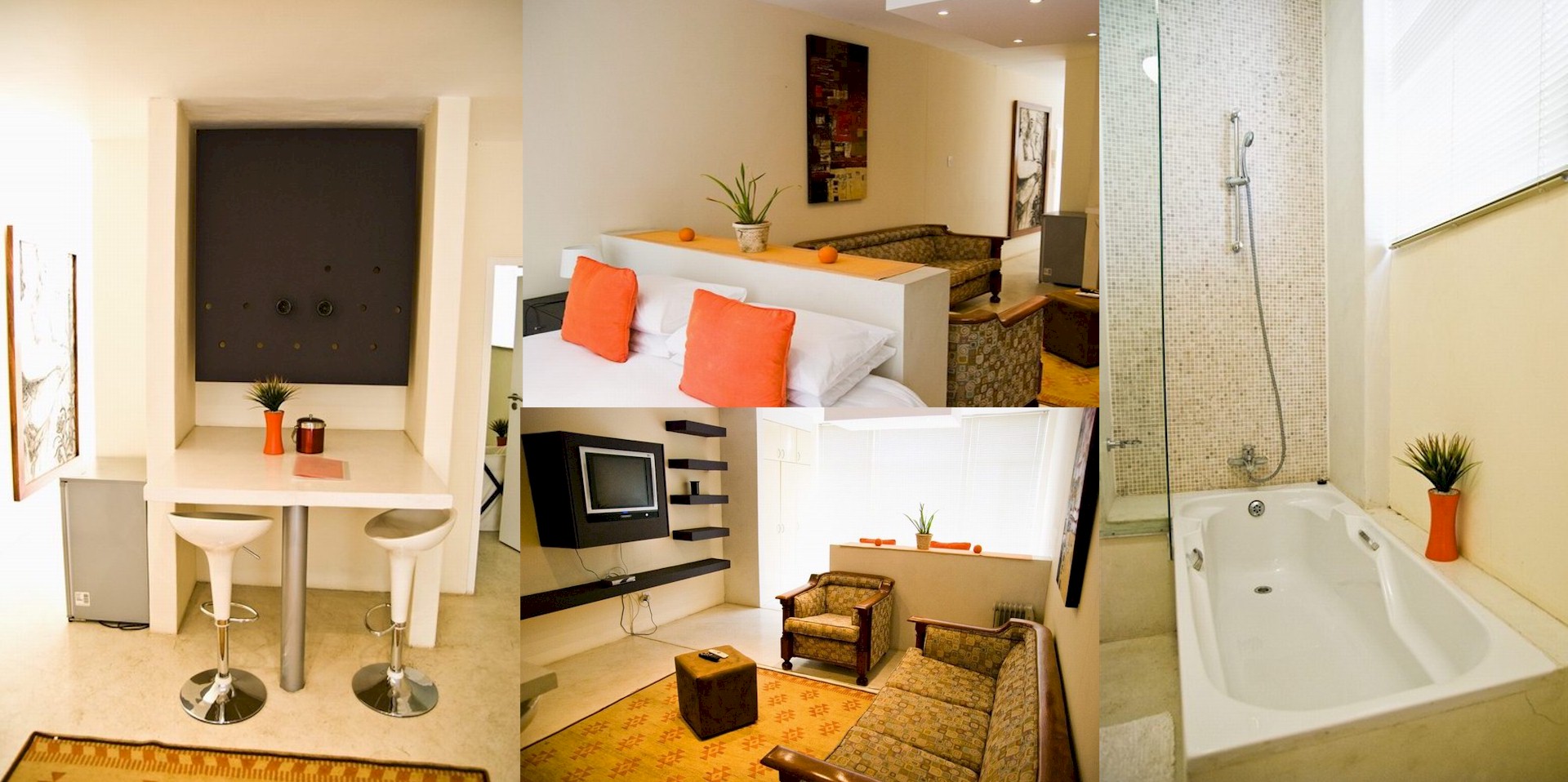 Domba Executive Suites accommodates singles, couples, and even has suites specifically designed for families of four. Bathrooms are equipped with showers, and several are equipped with bath and shower.